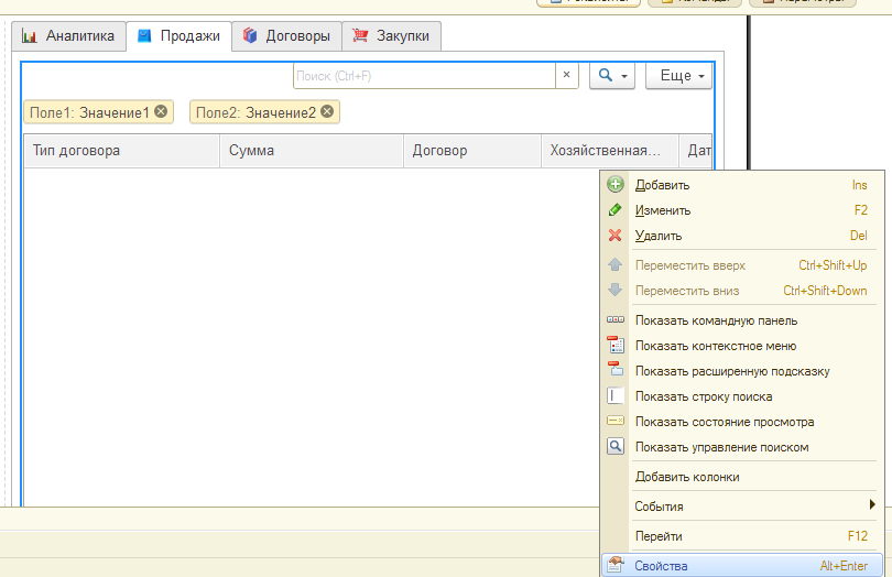 Для начала необходимо перейти в конфигуратор и открыть форму, в которой используется динамический список.