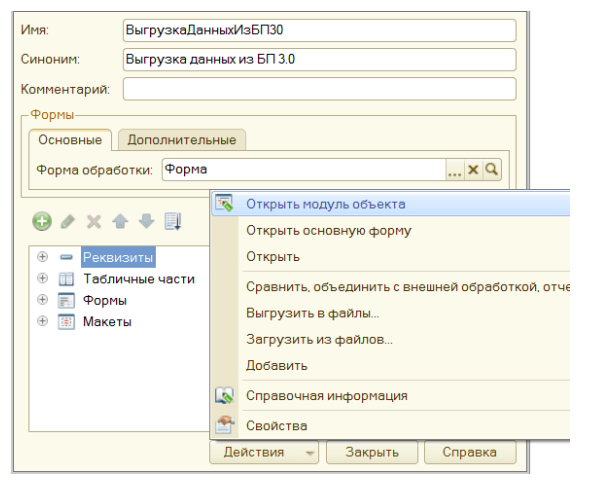 1. Установить пароль на текст модуля объекта обработкиЧтоб установить пароль на текст модуля объекта обработки, следует открыть данный модуль в Конфигураторе.