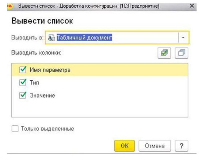 Когда данные результата запроса сохраняются в файл распространенного формата, то частые задания можно решать, не прибегая к созданию внешних отчетов. Для запуска консоли запросов и написания текста обращения к базе данных требуется гораздо меньше времени, чем для оформления формы отчета и написания процедур вывода. Команда «Вывести список…» предлагает несколько вариантов и позволяет выгрузить только выделенные строки и определенные столбцы.