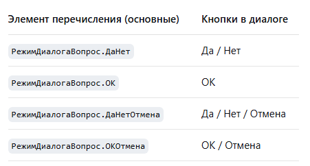 4. РежимДиалогаВопрос — для задания кнопок в диалоге